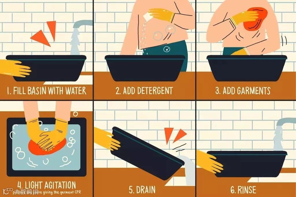 更需要留意的是,水洗标上的手洗,并不是像我们在电视里看到的那样:坐在潺潺小溪边的大石头上,在搓衣板上奋力洗刷刷。
