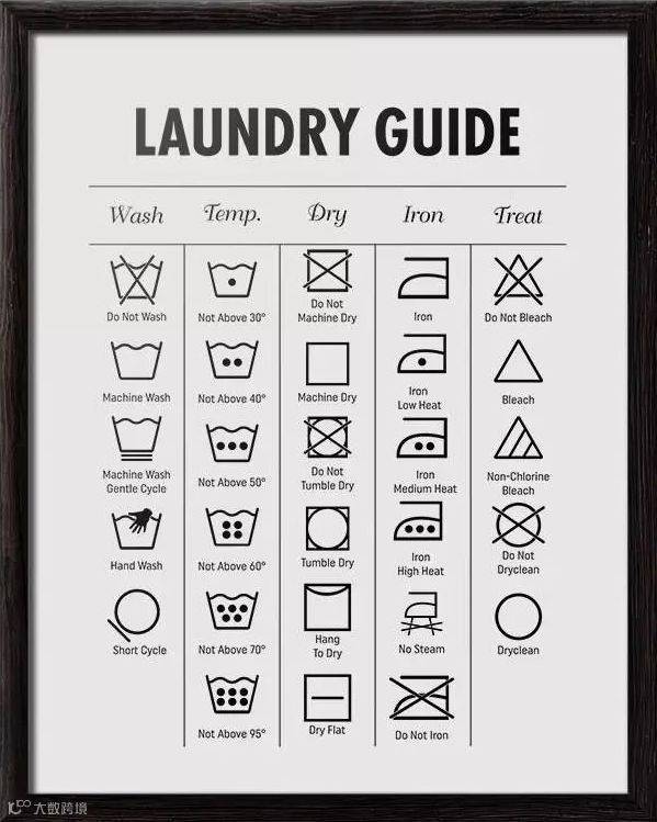 如果是买的国外品牌,就需要我们自己认识一下这些标志,了解一下洗涤过程的英文名称。
