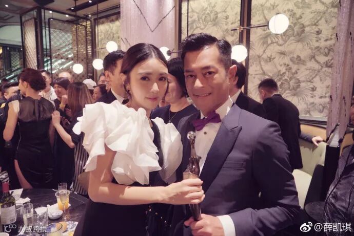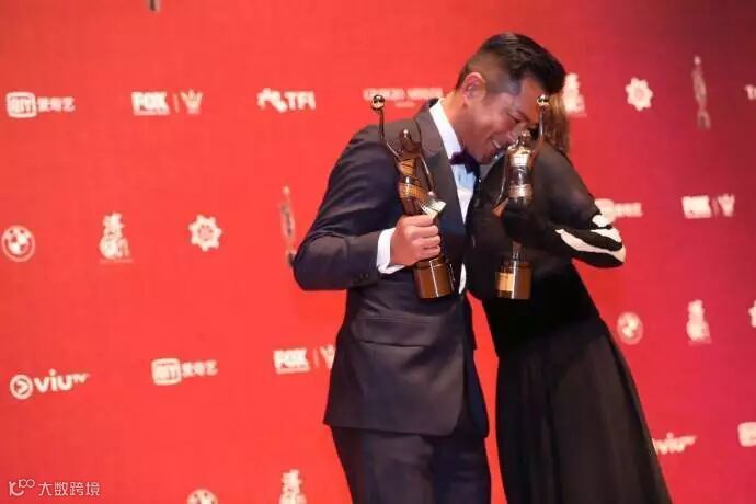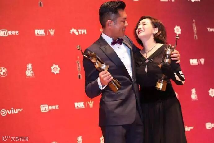 影帝古天乐和影后毛舜筠后台捧杯合影