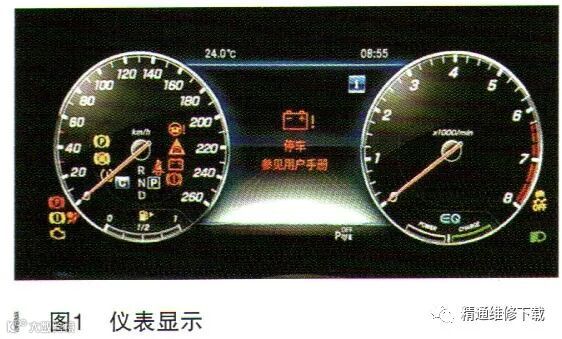 一辆行驶里程约1400km、配置264缸内直喷发动机(带48V技术)、9速变速器的新款奔驰C260轿车。用户反映:该车行驶中仪表显示48V蓄电池报警,停车后不能启动。