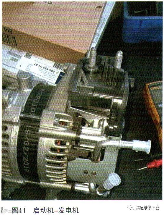 看来问题的根源终于找到了,是由于启动机一发电机的正负极内部短路,导致48V系统报警,导致发动机不能启动的,短路了,48V电源就不能输出了,DC/DC就关闭了48V的输出。48V启动机一发电机的实物图,如图11所示。