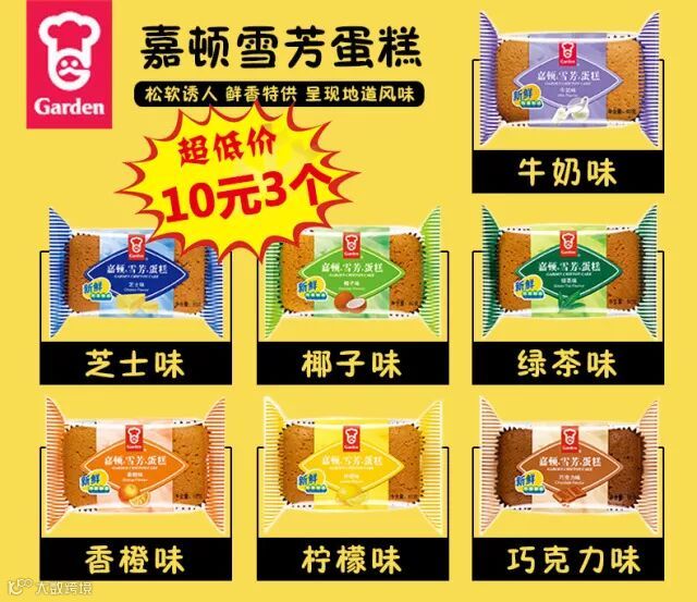雪芳蛋糕(芝士味、绿茶味、香橙味)+排包