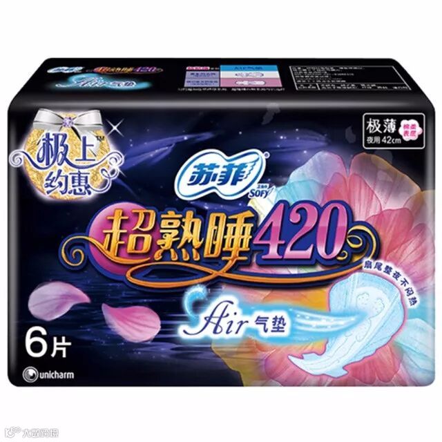 苏菲超熟睡AIR气垫420 6片卫生巾,原价10元 特价:6元 |