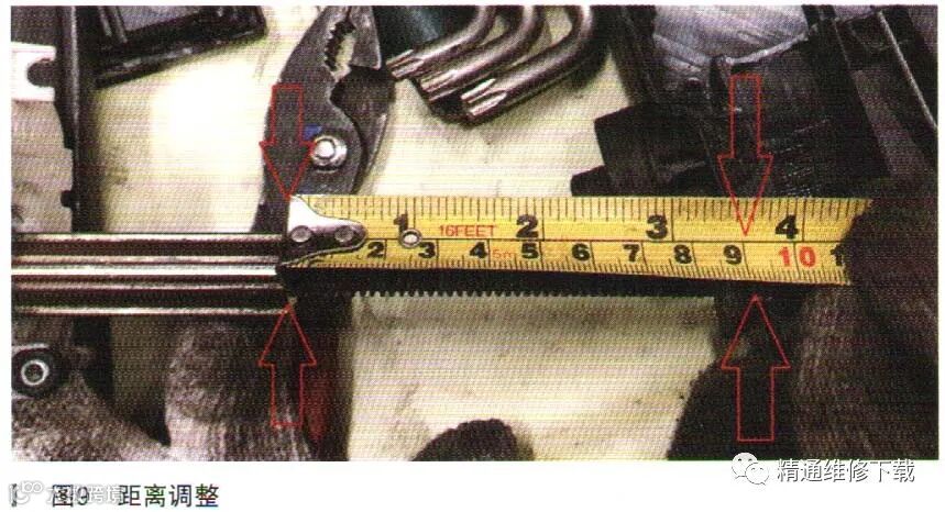 经过以上对比检查诊断为驻车制动器机构抱死引起驻车制动器保护报警发出异响,拆下制动器机构,将花键轴和螺纹移动调整9 cm,如图9所示。
