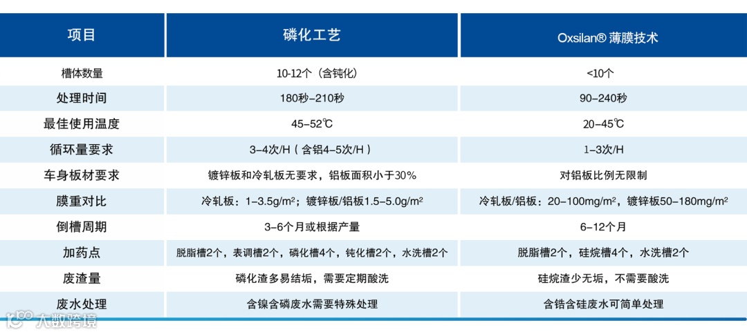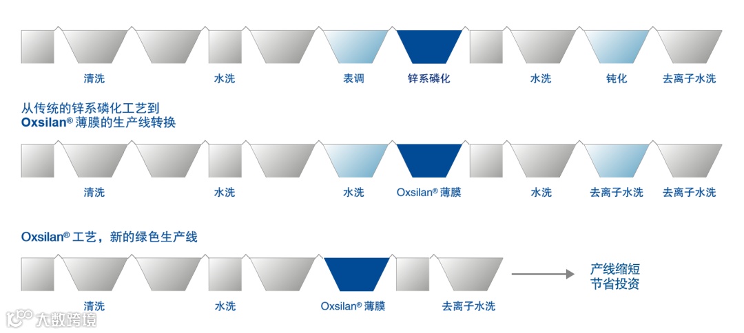 Oxsilan®薄膜技术工艺简单,工序少,处理时间短,不需要维护表调、钝化设备,减少了设备维护的工作量,有效提高生产效率。