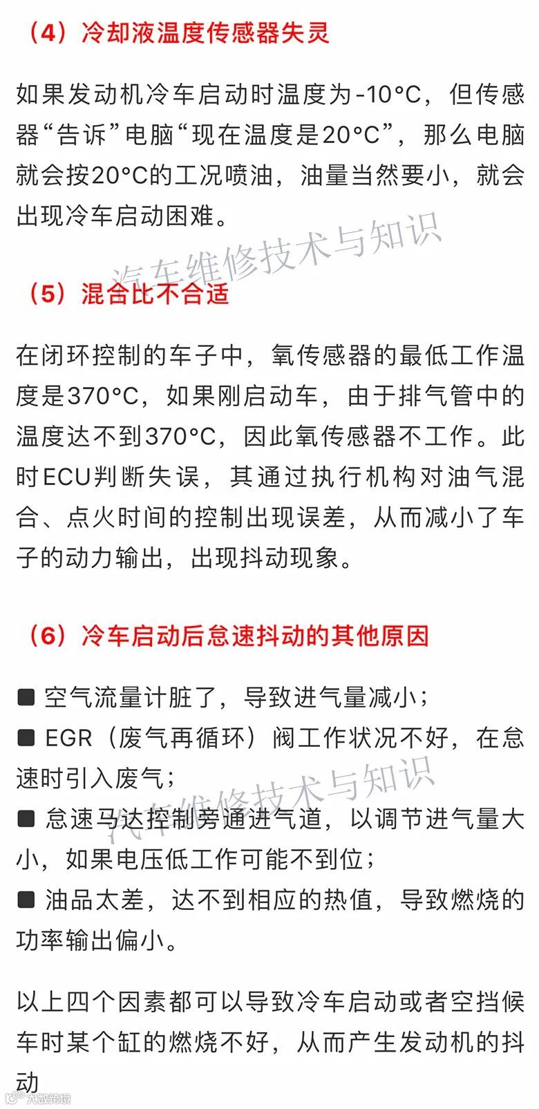 (2)发动机冷车时启动困难,热车后启动正常故障检测方法