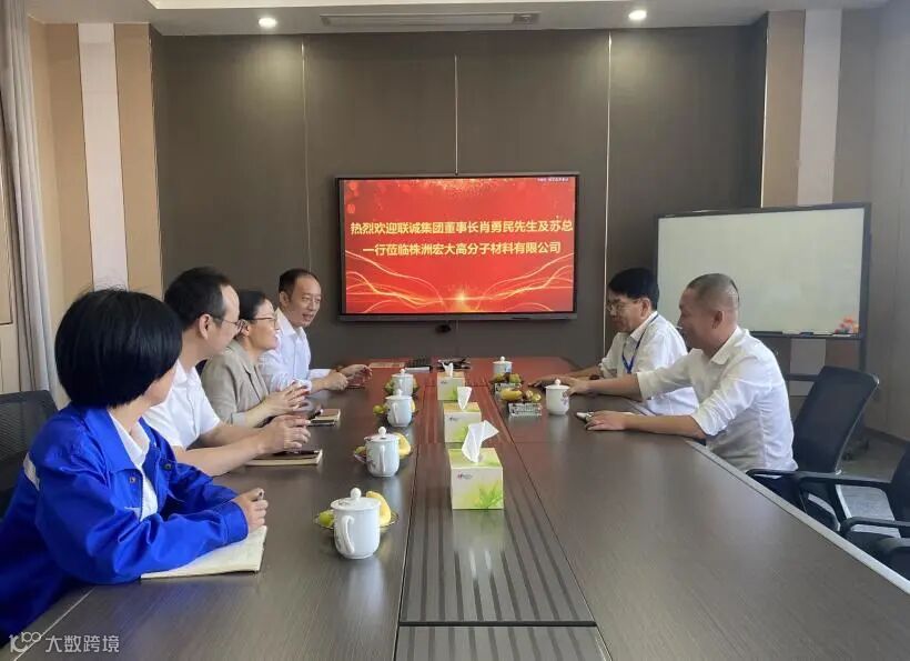 2023年10月17日,株洲联诚集团董事长肖勇民先生、新材料公司总经理苏科先生莅临株洲宏大高分子有限公司考察指导工作。宏大高分子董事长曾维楚先生、总经理向惠玲女士携管理团队进行了接待。联诚集团考察组实地了解了企业情况,提出要在信任、共赢的基础上推进深度合作,彼此成就。