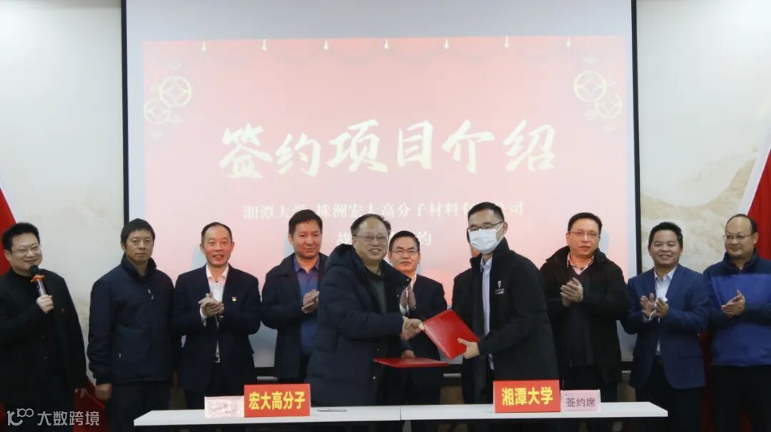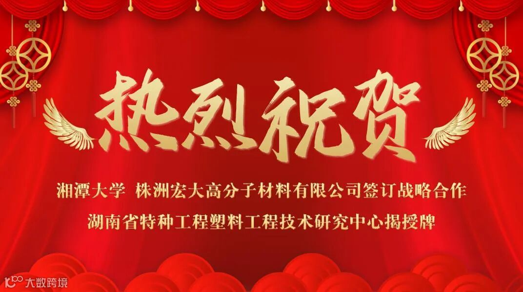 2022年12月8日,株洲宏大高分子材料有限公司与湘潭大学战略合作签约仪式暨湖南省特种工程塑料工程技术研究中心揭授牌仪式在株洲举行。 株洲宏大高分子材料有限公司董事长曾维楚、党支部书记兼副董事长刘广、总工程师兼中心主任肖炳荣、技术副总监兼中心副主任张鹏、湘潭大学副校长盛明科、湖南省科技厅基础研究处张登副处长、株洲市政府副秘书长黎平、株洲市科技局党组书记、局长李红等出席签约仪式与湖南省特种工程塑料工程技术研究中心揭授牌仪式。