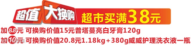🏠超市购满38元可加钱换购超值商品