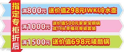 🏠指定专柜折后购满额送冷水壶、钢锅、骨瓷套装、唛酷锅等