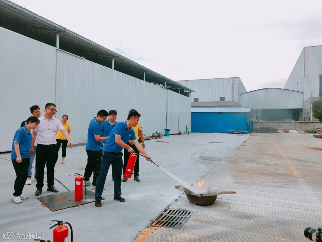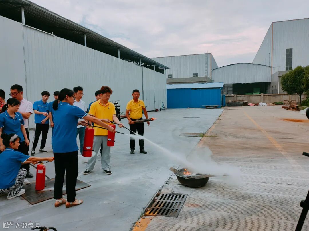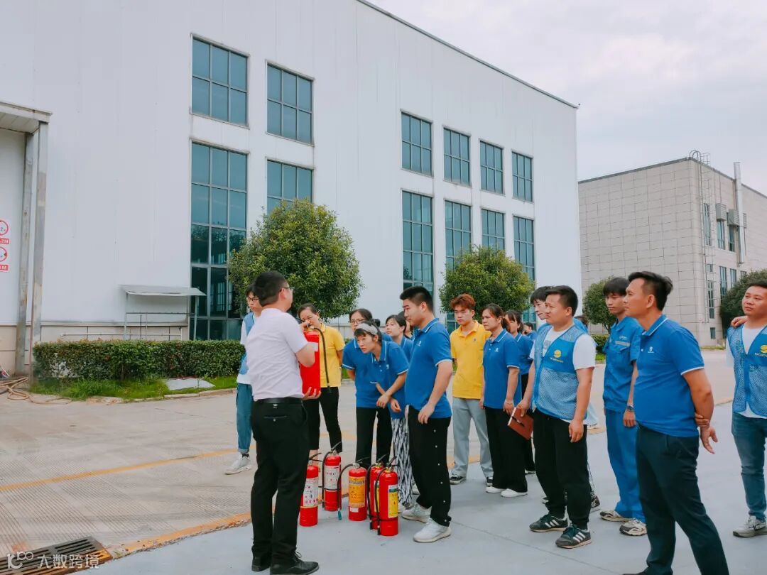 消防演习现场,周老师为大家讲解演示灭火器的使用方法及注意事项,明确不用类型的火灾,如何进行应急灭火,并让现场全体员工上手实操了一遍。