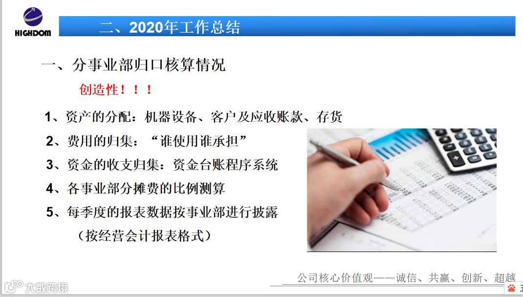 与以往大不同的是,经过半个多月的准备充分,各部负责人结合PPT进行汇报,全面、客观、深入地分析这一年工作的内容及改进。围绕经营业绩、回款情况、阿米巴推进情况、财务管理状况、项目完成情况、党建工作、体系运行情况、采购工作以及董办工作,以及存在的问题进行总结分析。海量的数据、完美的报表呈现,展现出这一年所有宏大人的辛苦付出以及对2021年工作的积极展望。