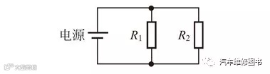 ■ 并联:若干个元件首与首连接、尾与尾连接,接到一个电源上,这种连接方法叫并联,如图电阻R1、R2 的并联电路