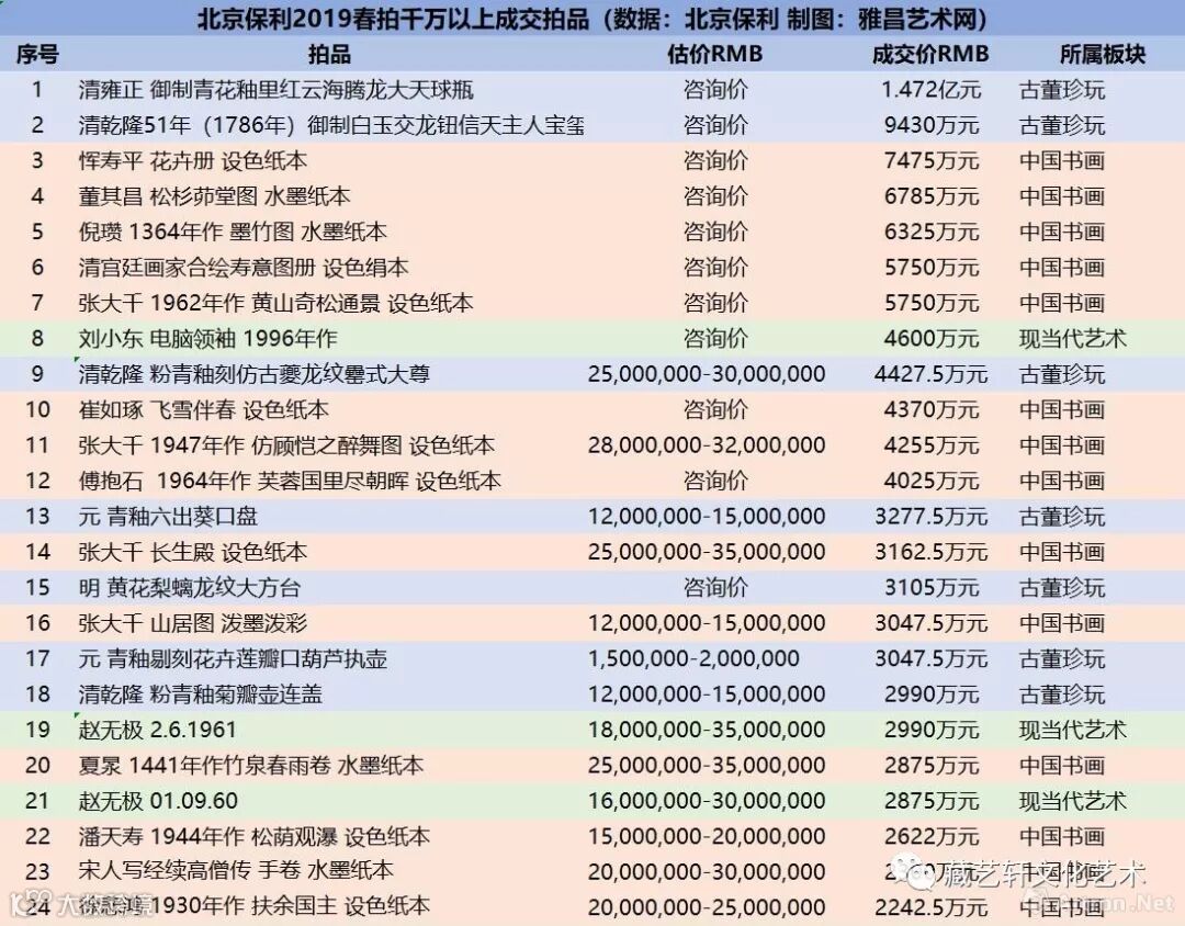 北京保利2019春拍千万以上成交拍品