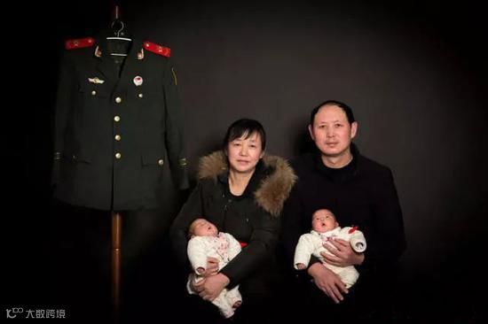 和他们新出生的龙凤胎拍摄了一张全家福,