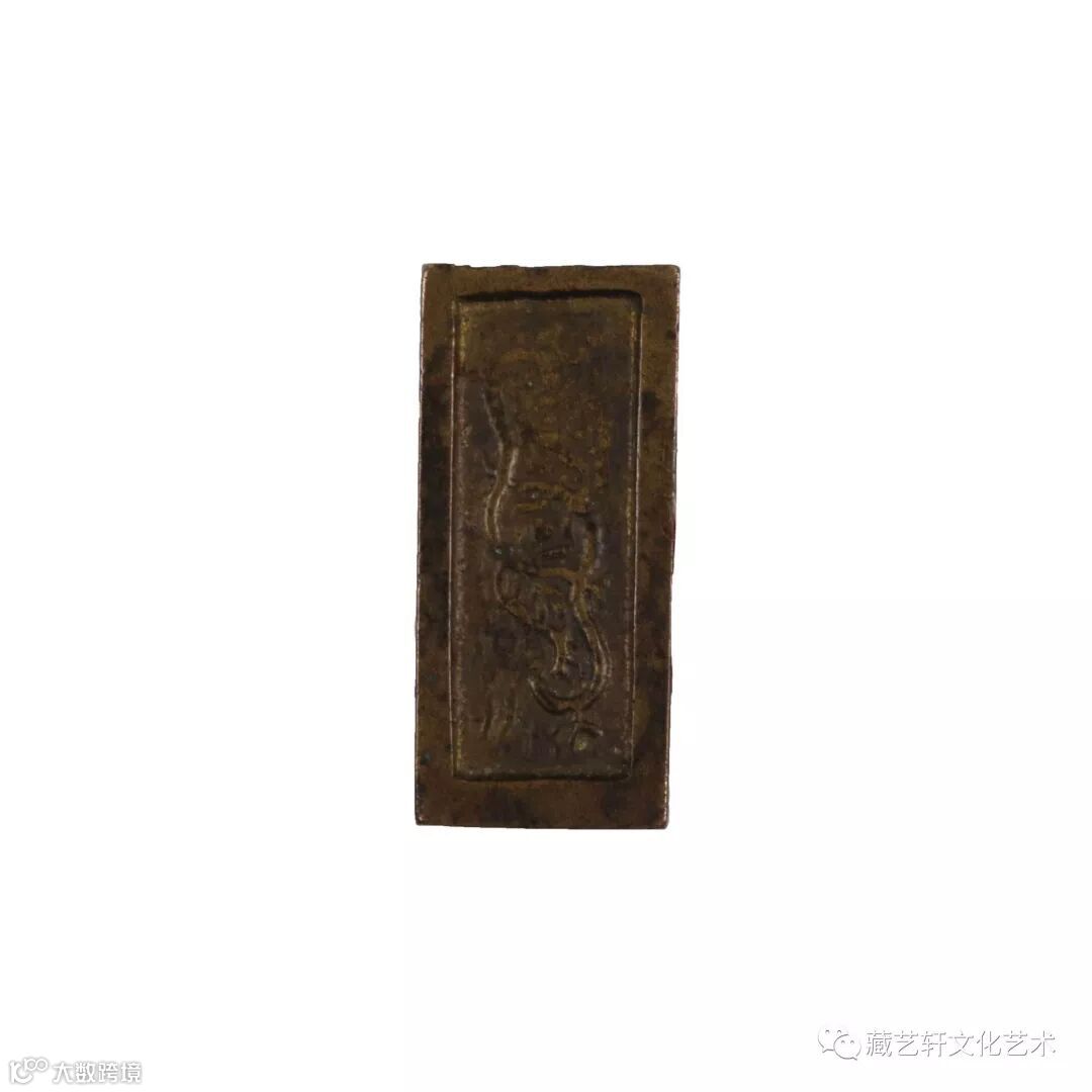 此藏品为乾隆金宝,正面刻有“乾隆金宝”四个字,背面刻有龙纹,龙头上的鬃毛向后飘,龙须的弯曲程度不大,龙鳞精美,以及龙的整体风格:精,细,繁。经过长期的流传、把玩,表面上会生成一种坚硬的黑褐色或古铜色包浆,业内称为“传世古”。“传世古”坚牢,包浆难以刮除,流传愈久,色泽愈深,质地越是坚牢,用水煮刀刮都很难去掉。藏品上的绿锈和黑褐色的包浆显而易见,有着鲜明的历史特性。