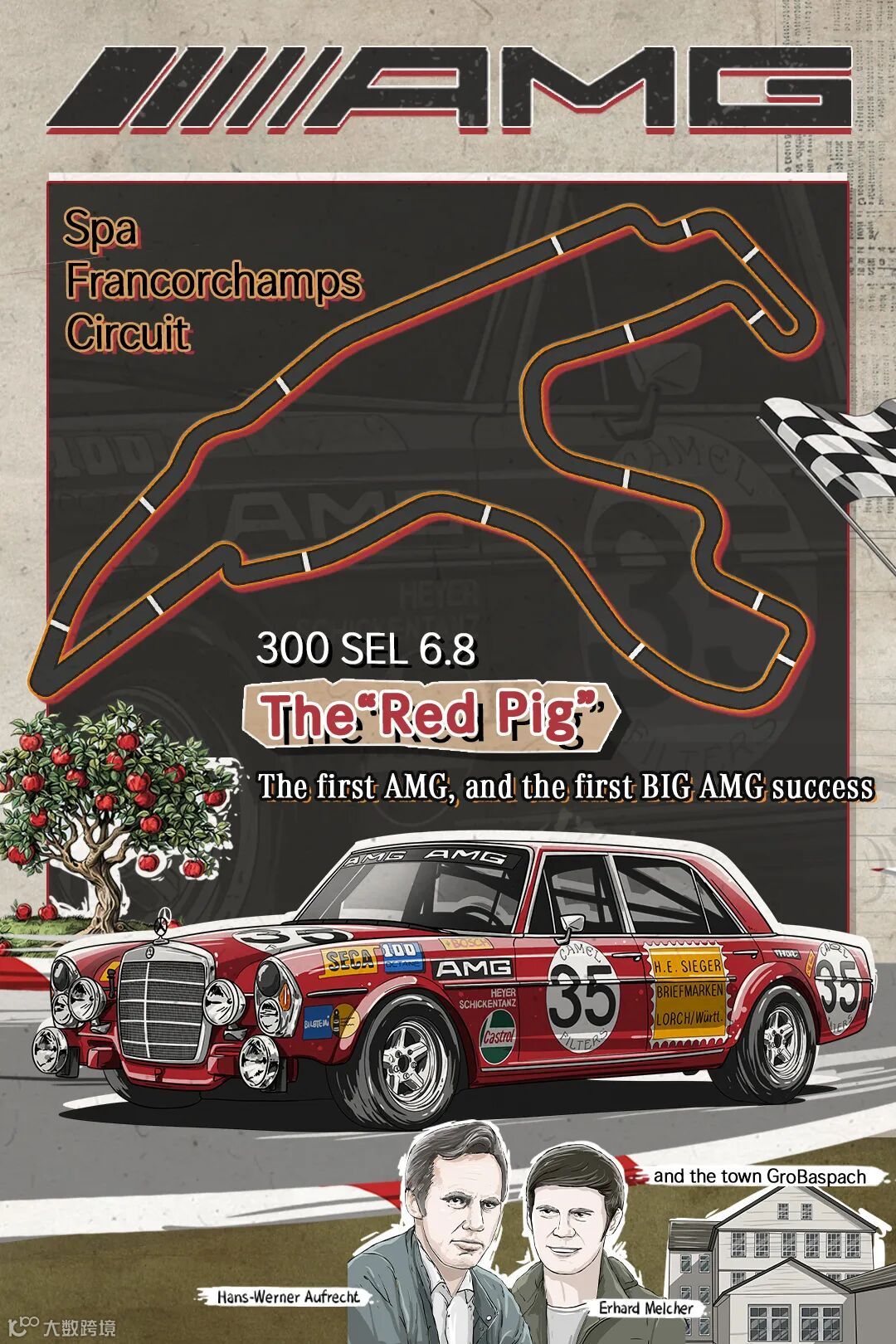 1971 年,这辆被昵称为"红猪"的赛车,以组别第一的姿态冲过斯帕终点线,AMG由此一举成名。车迷们记住的不仅是它“猪鼻”造型的空气动力学套件,更是两位工程师在车库里彻夜调校的执着身影。