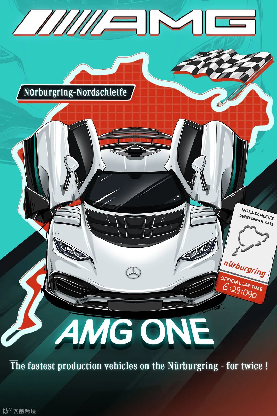 2022年11月,纽北阴雨绵绵,赛道湿滑。在赛道关闭前的最后一分钟,梅赛德斯-AMG ONE终于冲上了还未干透的赛道。凭借顶尖的性能与车手的精湛技艺,AMG ONE以6分35秒183的成绩,创造了量产车最快纪录。
