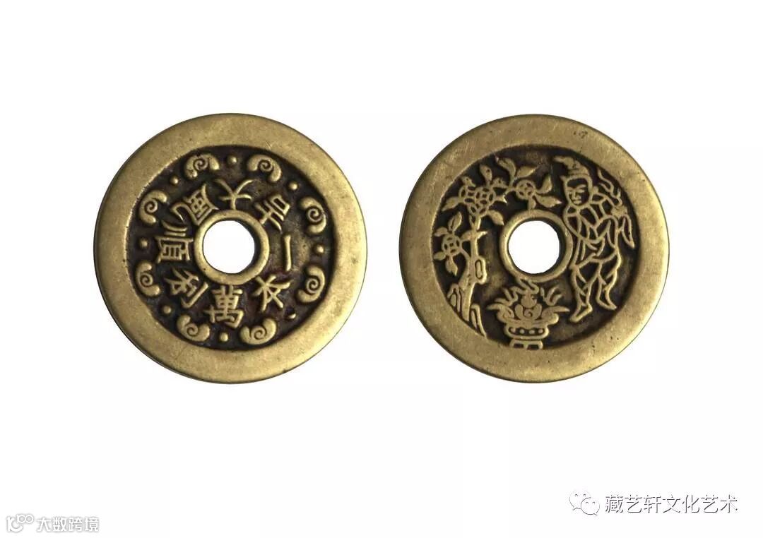 Spending money: The front of the money is "a book with all benefits and good luck", and the periphery is decorated with a circle of gold and gold treasures. On the back, there are figures, money trees, treasure basins and other patterns. This coin is old-fashioned and complete in appearance, and the traces left by history are clearly visible. The pattern is auspicious and vivid. It fully embodies the ancient folklore and the spirit of the ancients. The collection is exquisite in appearance, unique in aesthetic style, and small in coin, it also has a glimpse of social culture, which has a very high collection value.