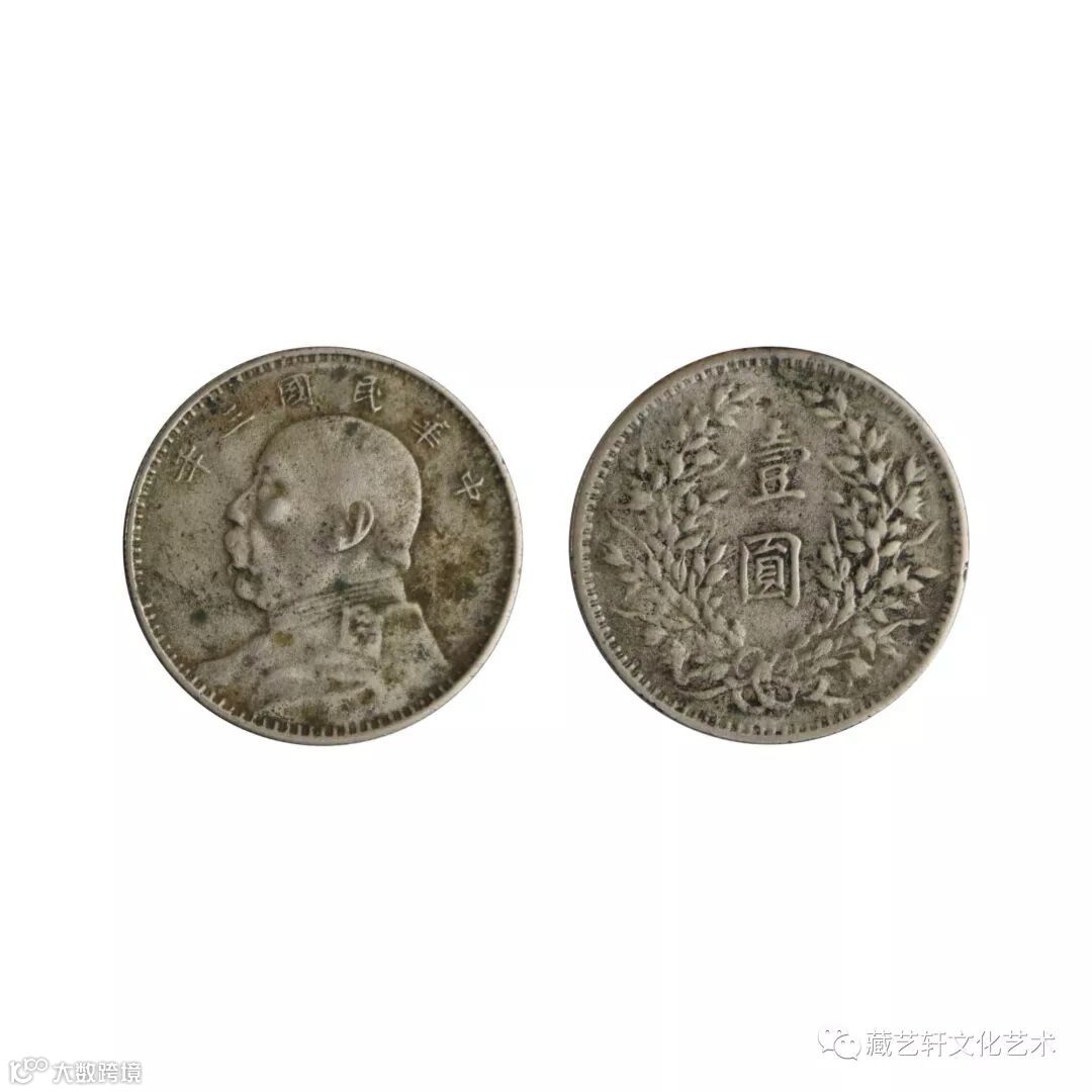 此两枚袁大头分别为中华民国三年袁大头壹圆和中华国民十年造袁大头壹圆,钱币正面上铸“中华民国十年”和“中华民国三年”中文繁体,下方为袁世凯左侧五分像,古代钱币中鲜有将人物画像刻在钱币表面,一个是因为技术受限,一个是统治者思想受限。民国袁大头打破常规,问世后万众瞩目,是很多收藏爱好者的收集目标。背面为嘉禾图案与币值为“壹圆”的中文繁体,嘉禾古称生长奇异的禾,古人认为是吉祥的征兆。人们认为它们是政治清明,天下太平的征兆;其另一思想取其家和的谐音,寓意”家和万事兴“之意。铸币之上当政者有国泰民安、吉祥如意之愿景,民间收藏,寓意"家和万事兴"之吉祥之宝,故有很高的收藏研究价值。