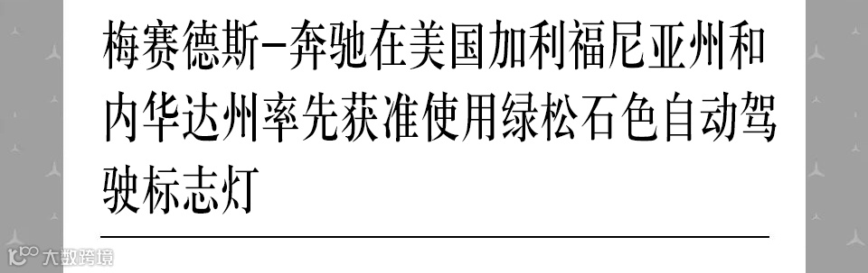 12月19日,梅赛德斯-奔驰在美国加利福尼亚州和内华达州,率先获准使用绿松石色自动驾驶标志灯,成为全球首个在美国获得此类认证的汽车制造商。绿松石色标志灯会率先用于搭载了L3级有条件自动驾驶系统的S级轿车、纯电EQS测试车辆,集成在前后车灯及外后视镜上,显示车辆处于自动驾驶激活状态,并与现有车灯、交通灯区分明显,是综合考虑生理和心理因素后自动驾驶的最佳配色。该标志灯可以加强公众对自动驾驶的接受度,还能增加车辆与驾驶环境交互来提高行车安全,推进自动驾驶技术创新和安全标准。