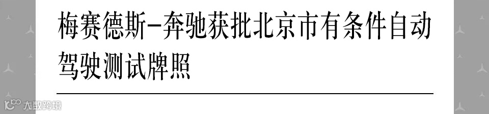 目前,梅赛德斯-奔驰是首个也是唯一在美国获得L3级有条件自动驾驶商用许可的品牌,同时是首批获得北京市L3级有条件自动驾驶道路测试牌照的企业之一。
