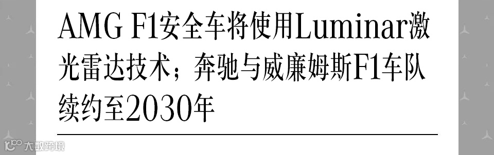 1月10日,梅赛德斯-AMG马石油F1车队宣布与汽车科技公司Luminar开展新的战略合作。基于双方当前合作的研发工作,从2024年的赛季开始,梅赛德斯-AMG GT Black Series F1官方安全车将应用的Luminar激光雷达技术。一辆搭载Luminar激光雷达技术的梅赛德斯-AMG GT Black Series,在2024年国际消费电子展(CES)的Luminar展台上也已展出。