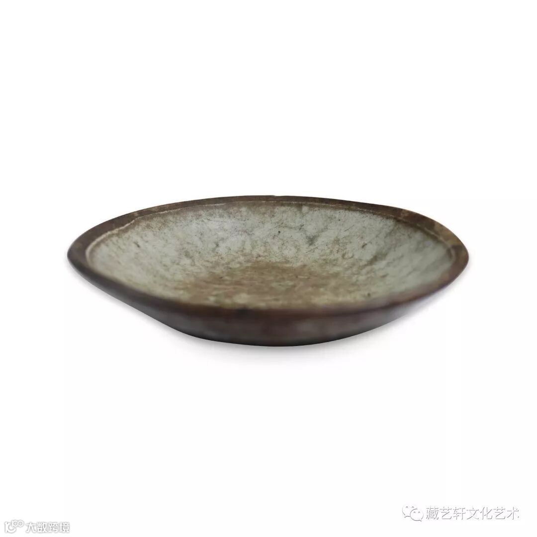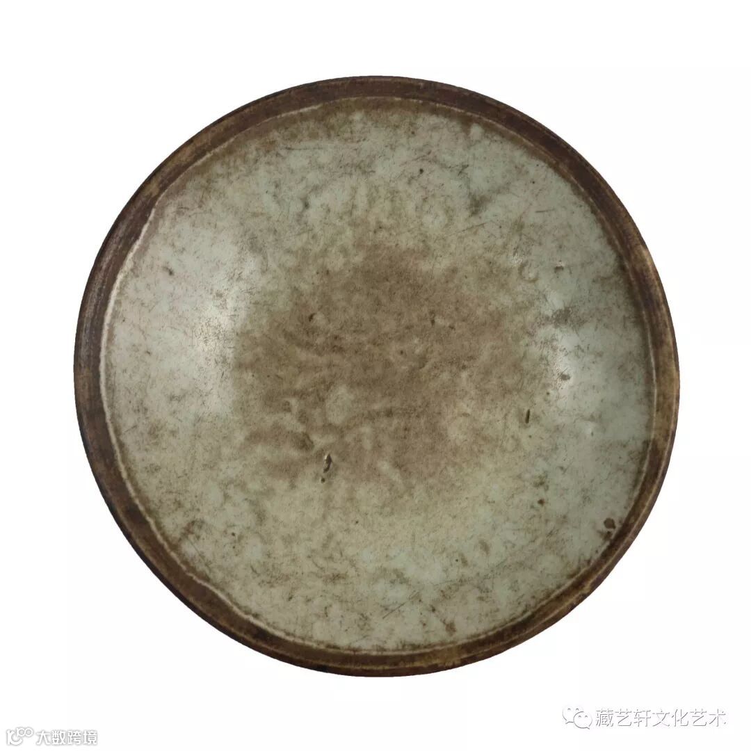 此藏品为元代磁州窑,盘侈口圆唇,浅腹圈足。胎子厚重,略显粗糙,外壁沿下施酱釉,乍一看还以为农村的大酱抹上去的。元代豪放的草原民族,造器简单粗犷,民风情调浓郁。鲜明的元代磁州窑特征。此器造型古朴舒展,胎釉坚密温润,器表老气自然,造型工整,极具收藏研究价值。