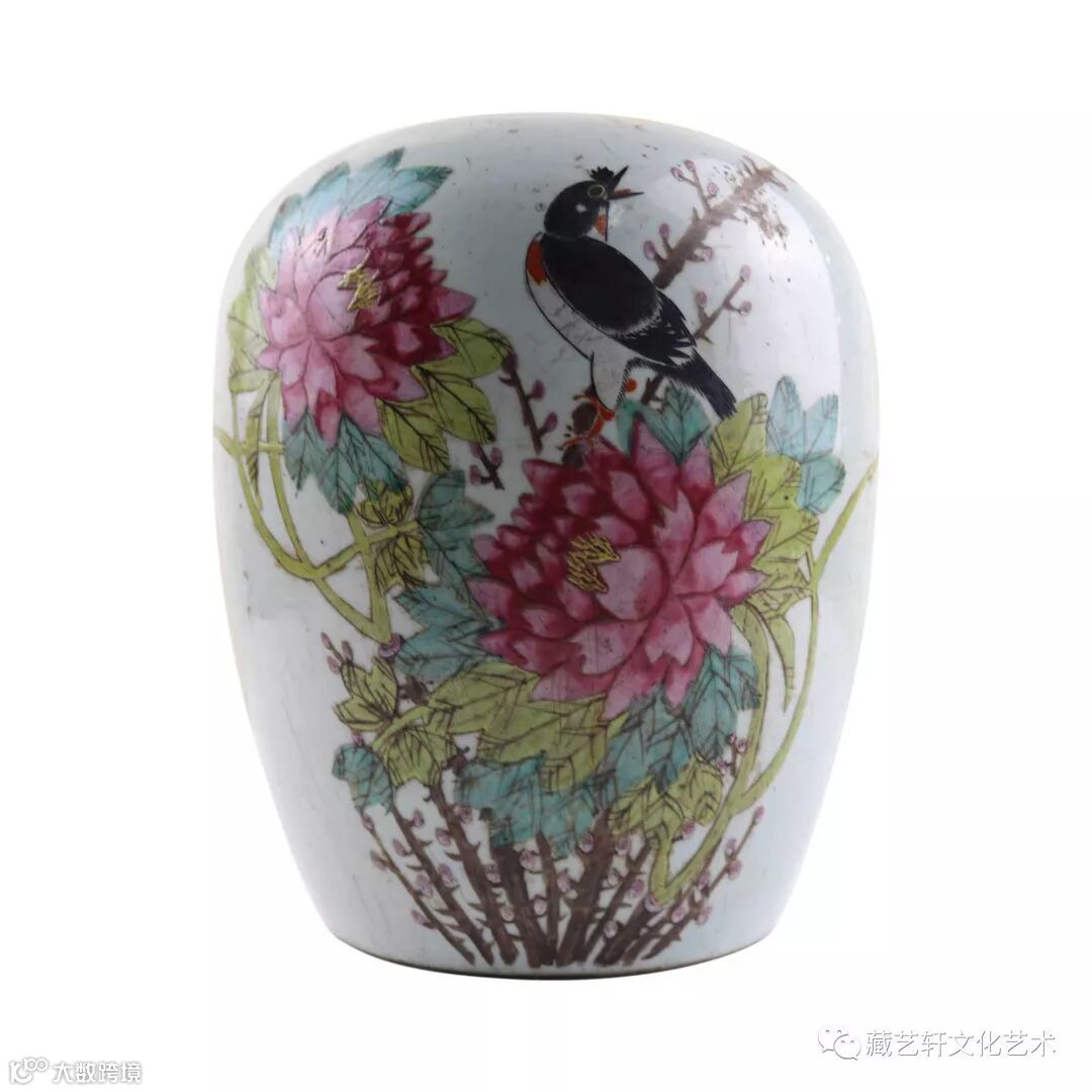 历经数百年岁月之后,粉彩瓷在如今已是收藏界热捧的高端瓷,其价值逐年攀高,是保值增值,投资收藏的精品。此件冬瓜瓶粉彩诗文花鸟盖罐装饰工艺繁缛,色彩淡雅明丽,是粉彩器之珍贵品,值得入手。