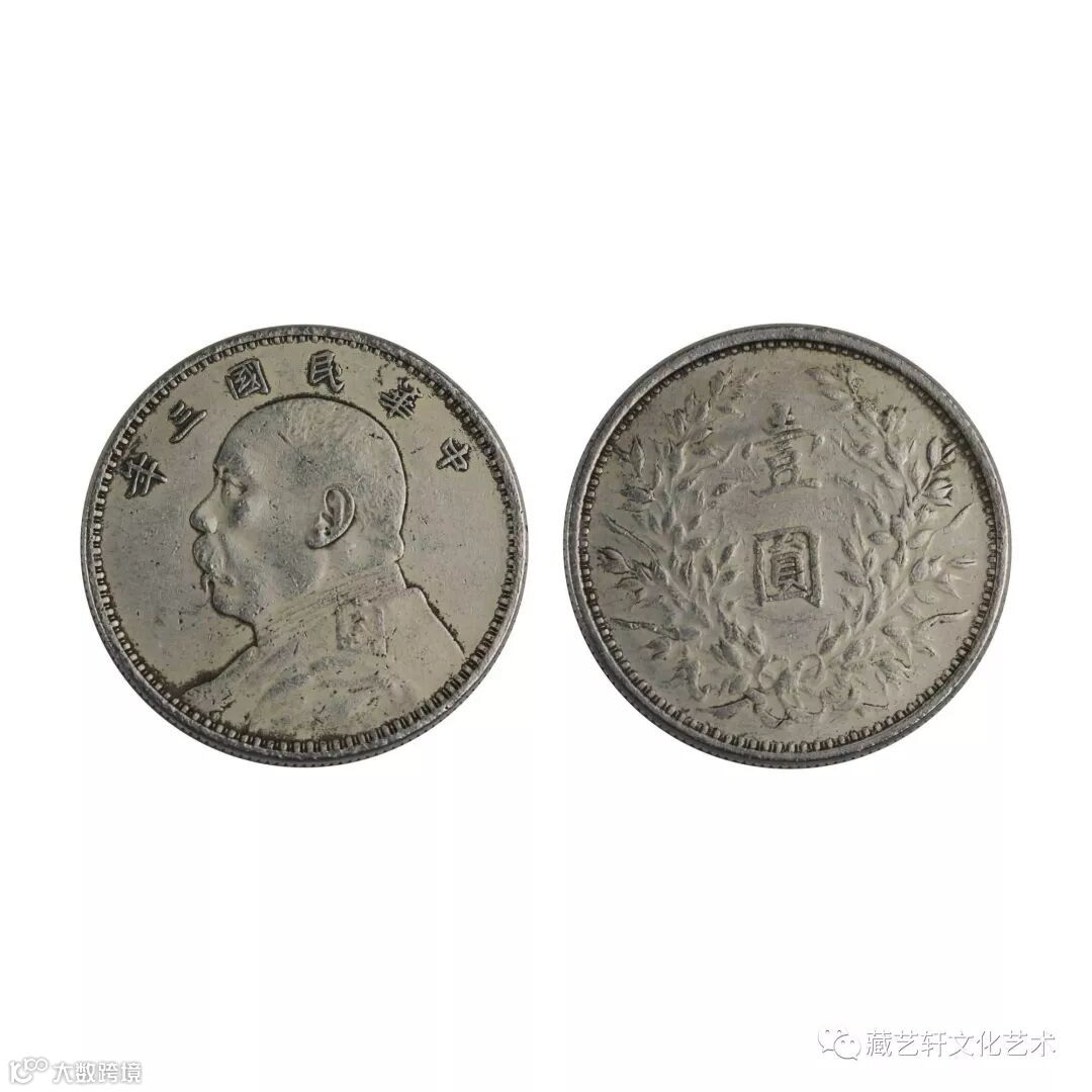 此民国三年袁大头,藏品正面为袁世凯侧面肖像,线条流畅,立体感强,头像上端铸有“中华民国三年”六字,字体清秀,洒脱自然;其背面为嘉禾图和币值,两条嘉禾左右交互,下系结带层次感强,春意盎然,朝气蓬勃;纹饰中间铸“壹圆”字样,笔画圆润饱满,字体秀美。此枚钱币包浆自然古老,设计古朴素雅,简洁大方,经历风霜,上面的痕迹见证了其历史的积淀,具有非常明显的历史过渡性特征,值得收藏。