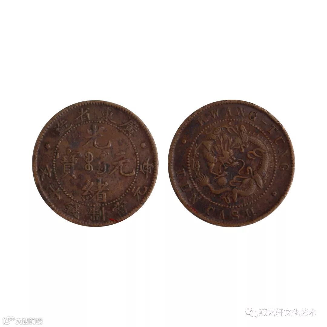 此藏品为广东省造光绪元宝(每元当制钱十文),钱币正面圈内铸有铭文“光绪元宝”,珠圈外上环铸“广东省造”四字,下环“每元当制钱十文”七字。钱币背面珠圈内铸有神龙腾飞图腾,外圈铸有英文,品相精致,龙纹细腻,线条优雅,纹理清晰,其审美风格独特,栩栩如生,着实是一枚珍贵的光绪元宝收藏佳品。钱币虽小,也可管窥当时社会文化一斑。钱币正面可见满汉文化的完美融合,背面则可看到国外文化的融入,是该历史时期社会文化背景的真实体现,对现今人们研究该历史时期的政治、经济、文化有着重要的作用。