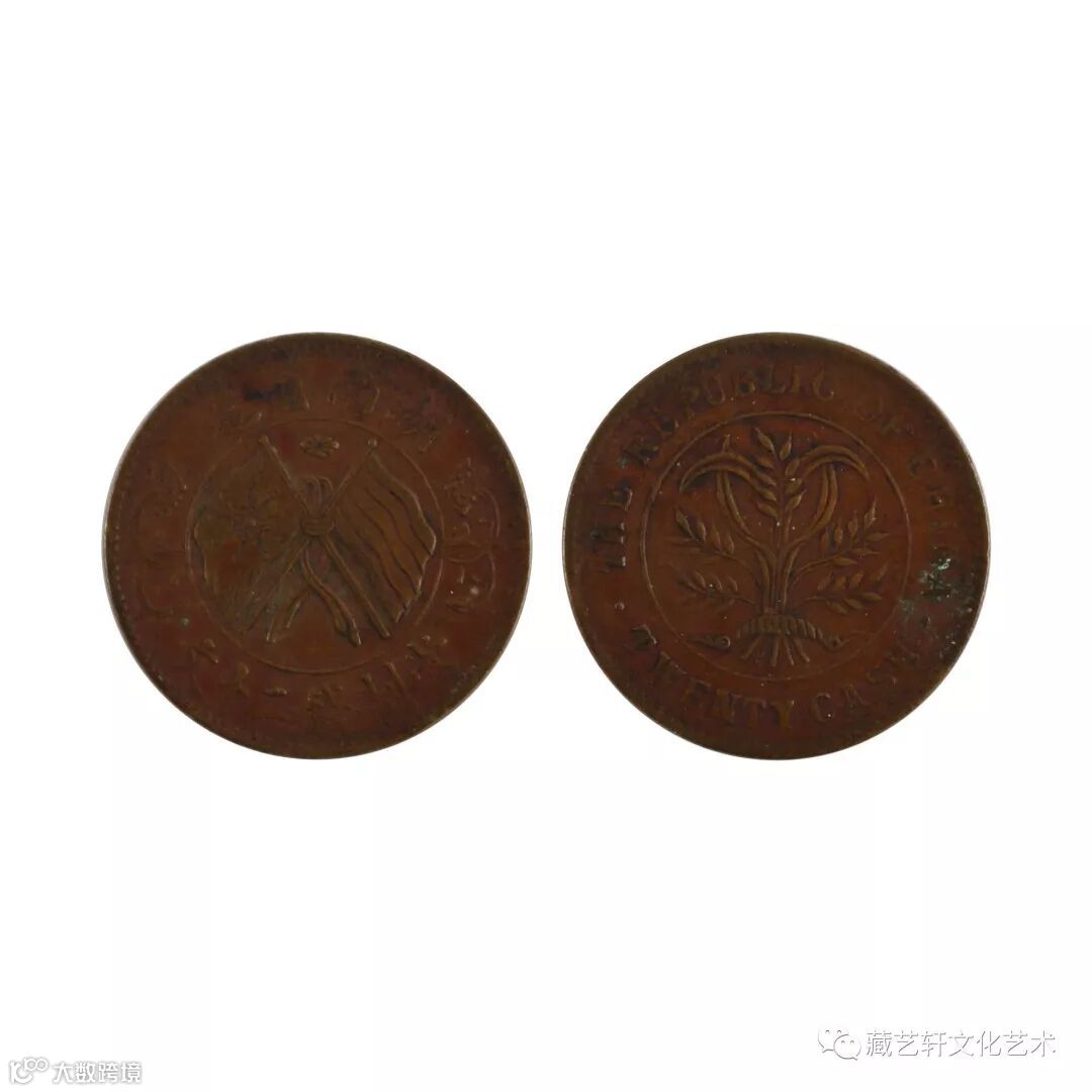 此币为湖南省造双旗币当制钱二十文,该铜币正面图案中央为两面交叉的国旗,上方为“湖南省造”四字,下面为记值:当制钱二十文。背面图案为稻穗组成的嘉禾纹,周边铸有英文。此枚铜币现存世量不多,上面的包浆锈也见证了其历史年代的沉积,不难看出它明显的历史过渡性特征,该铜币虽然历经沧桑,但纹路依然隐约可见。其是近代中国钱币中的精品,有着历史熏陶,是价值很高的革命文物,具有深远的历史纪念意义;同时,还是考古和研究中国历史文化难得的实物。存世量极为稀少,尤其是品相好的更为稀缺,因此很受收藏爱好者青睐。