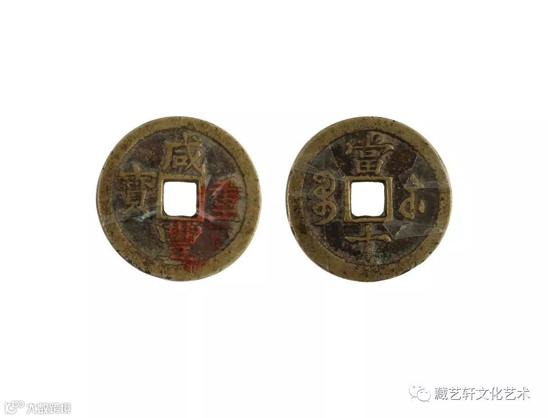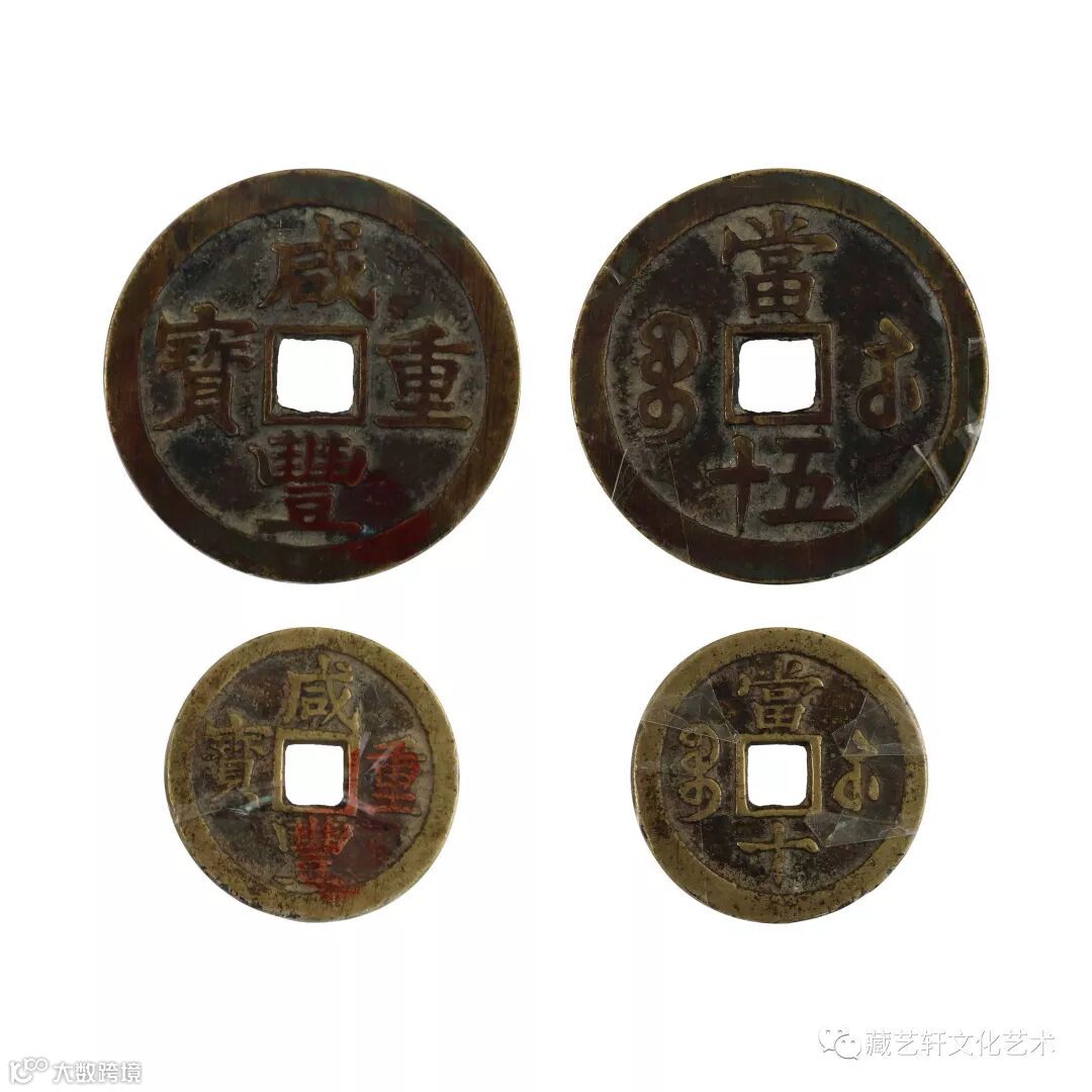 此组咸丰重宝,前者为“当十五”,后者为“当十”。藏品正面皆镌有“咸丰重宝”四字,背面上下两端镌有面值“当十五”,“当十”。左右分别镌有满文“宝”,“武”。咸丰重宝是一种铜钱,此组铜钱币十分精美,字迹清晰深俊,铜材优良,呈浅红黄色,钱文精美,没一丝一毫拖泥带水,比同版流通的钱稍大些、厚重些。由于铸造时间早,流通区域广,所以也是自古以来古藏爱好者最关心并致力于收藏和欣赏的计值钱币。在两枚咸丰重宝之中,又当推举咸丰重宝当十钱币为最。铸期最长、数量最大、版式最多、流通最广。此组藏品具有极高收藏价值,许多收藏家对它爱不释手,争相起价。