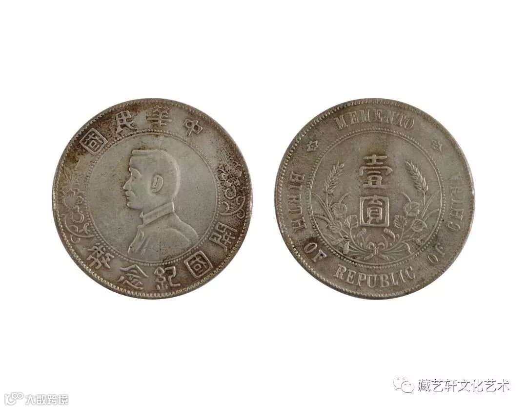 中华民国开国纪念币壹圆:此枚钱币钱面中央为孙中山先生侧面肖像,钱币上缘镌中文隶书“中华民国”四字,下缘镌“开国纪念币”五字,左右各为长枝五瓣花梢,意为“五权分立”之意;背面中央为中文隶书“壹圆”二字,左右各辅以嘉禾图案,寓意“丰民足岁”,嘉禾纹每枝一穗三叶,代表“三民主义”,边缘英文,左右分列六角星,直线边齿,包浆自然老道。极具历史价值和收藏价值。