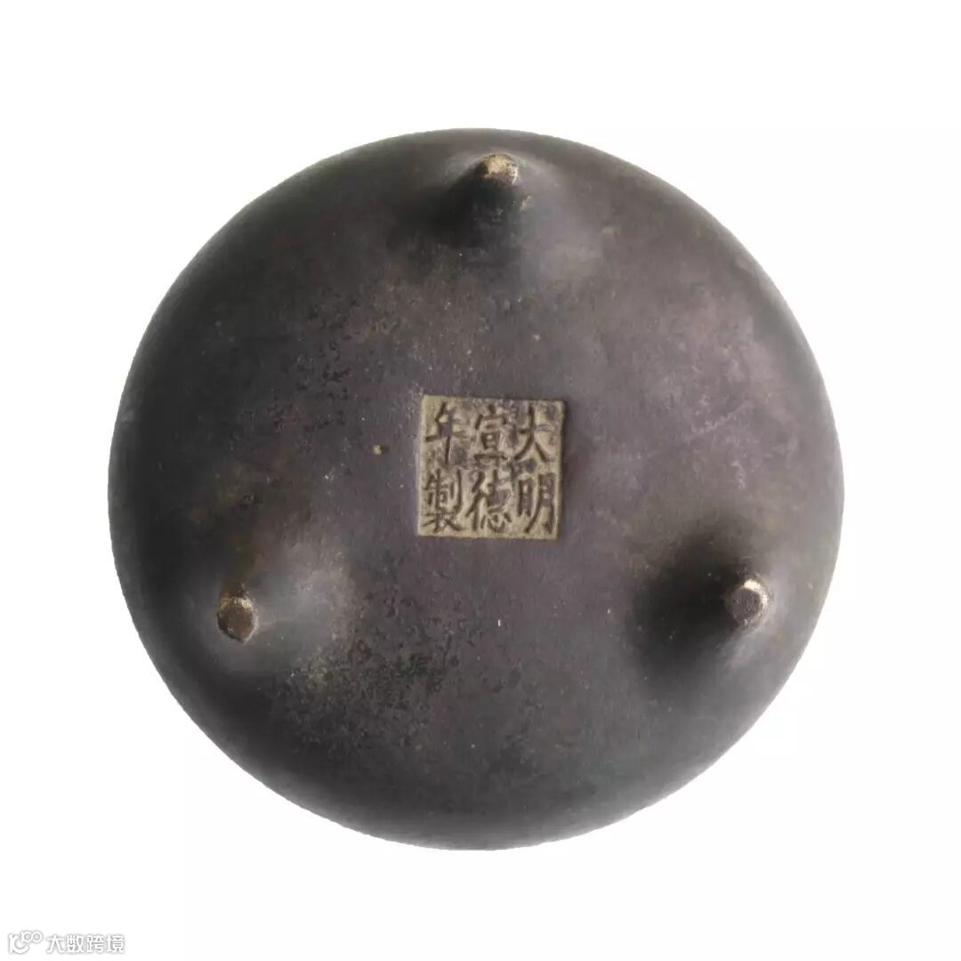宣德炉是中国历史上第一次运用黄铜铸成的铜器。为制作精品的铜炉,明朝宣德皇帝曾亲自督促,这在历史上实属少见。宣德炉以色泽为亮点,其色内融。此件大明宣德炉以黄铜制成,底书“大明宣德年制”楷书款,三足而立。其炉身形制规整,敦厚之中不失灵巧精致,作为书房陈设颇为雅致。焚香其内,数百年历史的厚重感随香外溢。它通体光滑,尽显铜炉精纯美质,铜质精良,入手沉甸。