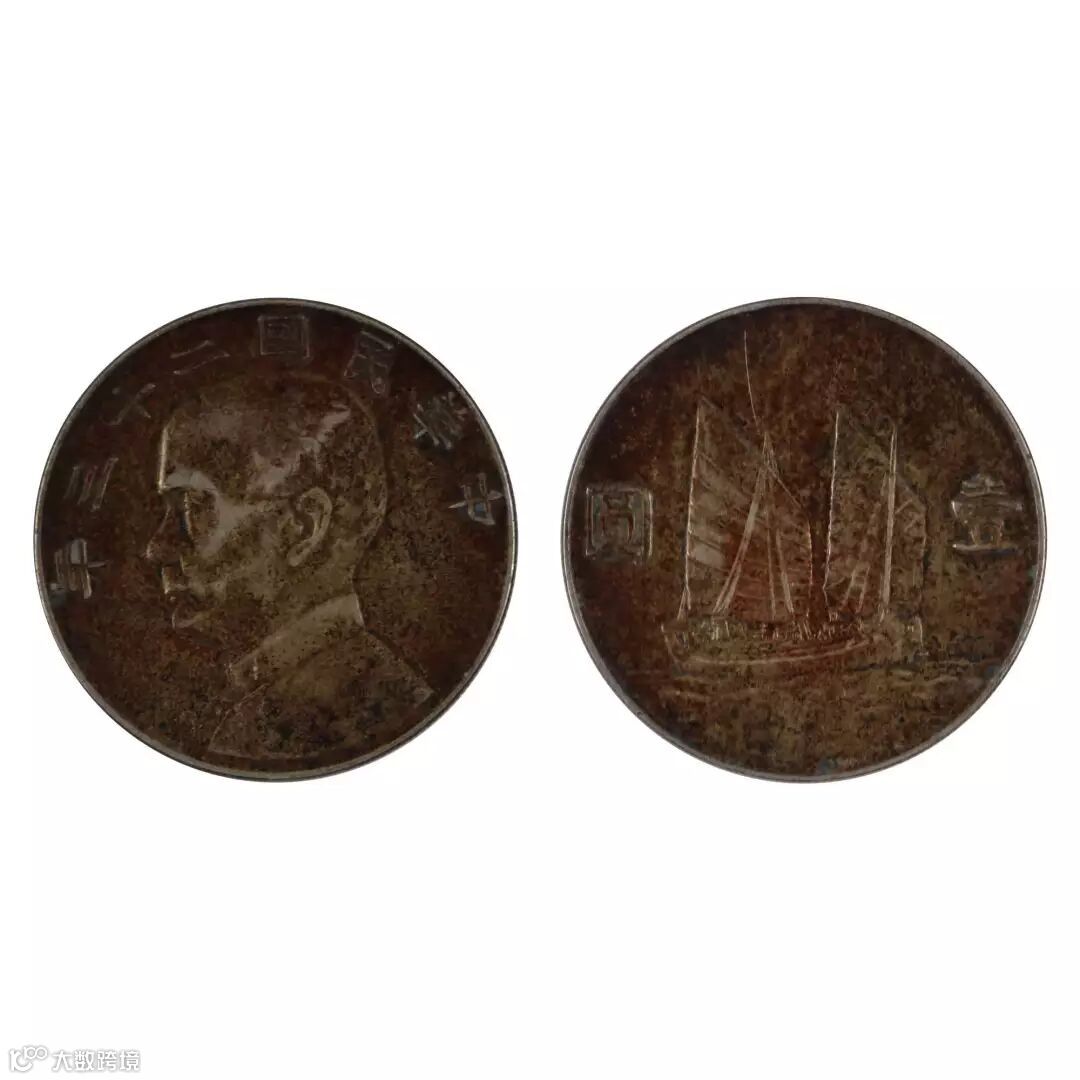 此币为孙中山先生头像的中华民国二十三年双帆币,由上海中央造币厂所制作完成。目前,这些双帆币的币值往往只有壹圆和中圆两种。当时,国民党政府在国内推行“法币”政策,以中央银行、中国银行和交通银行三大银行发行的纸币为法定货币,白银全部收归国家所有,限期进行法币兑换,不允许民间流通银圆币种,所以在民国二十三年时,以孙中山头像为图案的银币也并未流通于当时的市场之中。因其存世量极为稀少,故在今天的货币市场中依然备受藏家们的亲睐。