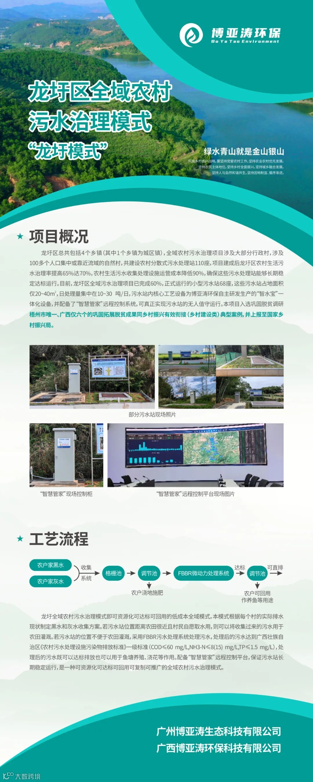 为进一步推进农村生活污水治理,改善农村人居环境,提升广大村民的幸福感和获得感。4月25日,梧州市委副秘书长陆艺罡带队到龙圩区大坡镇调研全域污水处理项目。梧州市龙圩区区委副书记严建洲、龙圩区农业农村局副局长李媚、博亚涛环保污水处理技术总监张亚文、博亚涛环保广西大区经理李汶松陪同。