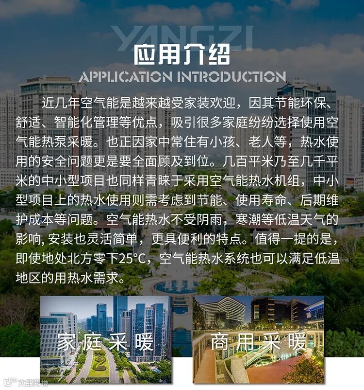 空气源恒温热泵运行时水电分离,无任何触电、易燃、易爆、中毒等安全隐患,并且内置电子水流保护、压缩机排气温度保护、压缩机高低压保护以及压缩机过流、电源错缺相保护等多重保护系统,安全性极高。空气源热泵投入市场使用以来,不受天气影响,全天候可持续工作,很少出现故障,所以市场反应都是非常不错的。