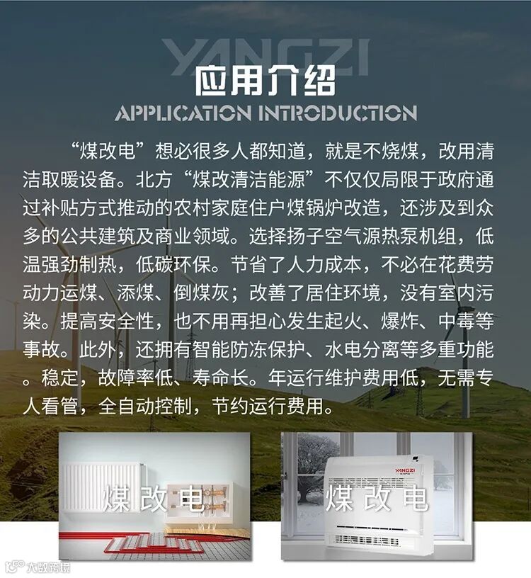 空气能热泵是以电和空气中的热能为媒介,在常温环境下,只需要消耗1kw的电量就能转化为4kw的热量,不仅比传统的取暖方式节约70%左右的能源消耗,还不会产生任何排放物,有利于保护大气环境,促进空气质量的改善。