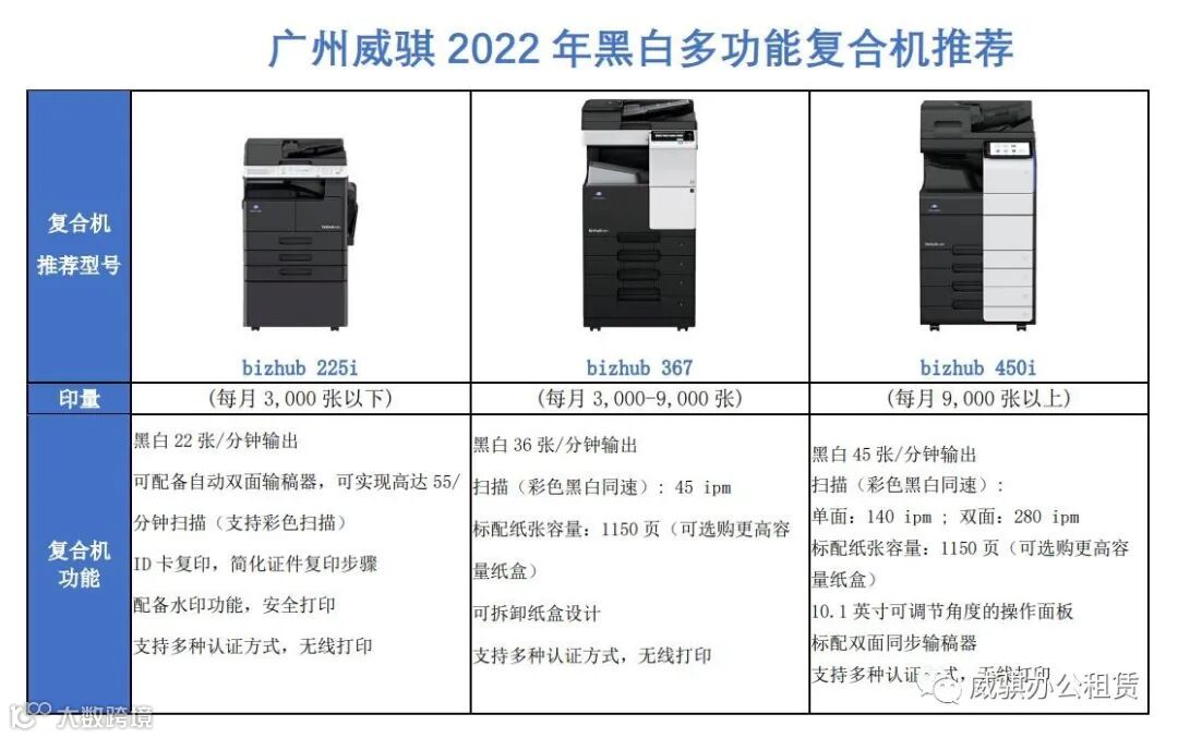 即便复印机租赁以二手机租赁为主,但也有部分用户喜欢使用全新复印机,毕竟新机的性能以及稳定性肯定是比二手机高,当然,在同速度上的机器,新机的租赁价毫无疑问是要比旧机高的。