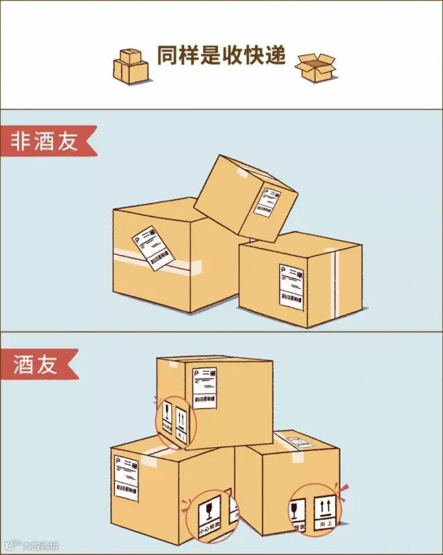 酒友:前方易碎警告,此面向上,轻拿轻放