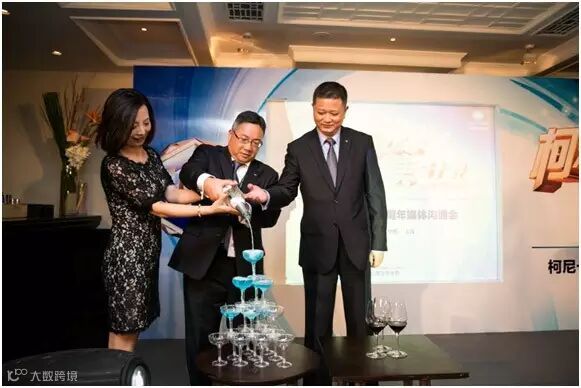 柯尼卡美能达三位高层现场倾倒香槟塔