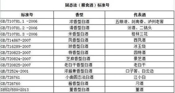 比如:固态法白酒的执行标准是“GB/T10781.1-2006”,新型白酒的执行标准是“GB/T20822-2007”(固液结合法白酒)和“GB/T20821-2007”(纯液态法白酒)。这三个标准也是我们鉴别白酒质量的重要依据,一般来说固态法白酒的风味要好于固液结合法白酒,固液结合法白酒又好于纯液态法白酒,质量差别不言自明。所以说,我们在买酒的时候,最好少问店家是不是粮食酒这样的话题了,小心被忽悠。