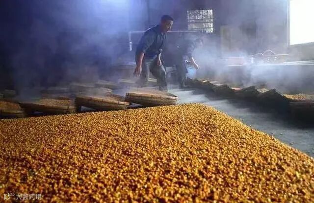 3、当使用的酒曲 制曲温度高时,应增加用曲量。这是由于高温制曲,酒曲中的糖化菌、酵母菌含量降低,而产酯的细菌含量增加,此时酒曲的糖化力和发酵力差,但是生香好,为了保证发酵正常进行,需要适当增加酒曲用量。