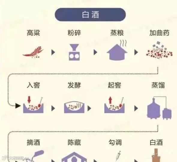 白酒酿造七分工艺三分原料,白酒酿造工艺有很多种,酿造的方法决定了白酒的风味、香气、香型等。白酒是蒸馏酒,主要的酿酒过程包括:蒸煮、制曲、发酵糖化、蒸馏、陈酿和勾兑。