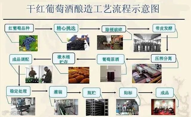 葡萄酒属于发酵酒,用新鲜的葡萄发酵糖化,再添加二氧化硫(起到抗氧化的作用),最后放入不锈钢桶或橡木桶中陈年而成。