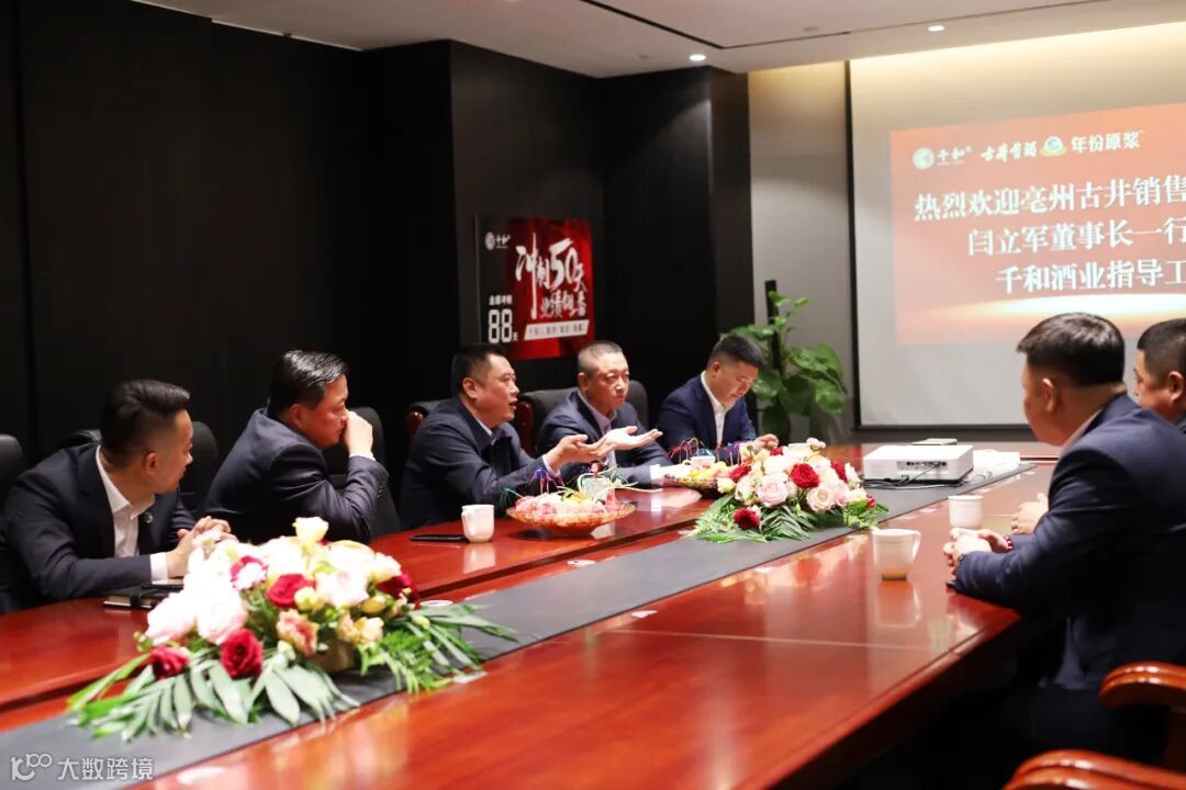 2023年4月18日上午,安徽亳州古井股份有限公司董事、常务副总经理,古井销售有限公司董事长闫立军、古井销售有限公司北部战区总指挥李力、古井销售有限公司东北大区总经理刘冰,一行人员莅临千和酒业集团指导调研,千和酒业集团董事长葛艳华、总经理裴杰携全体员工热烈欢迎。