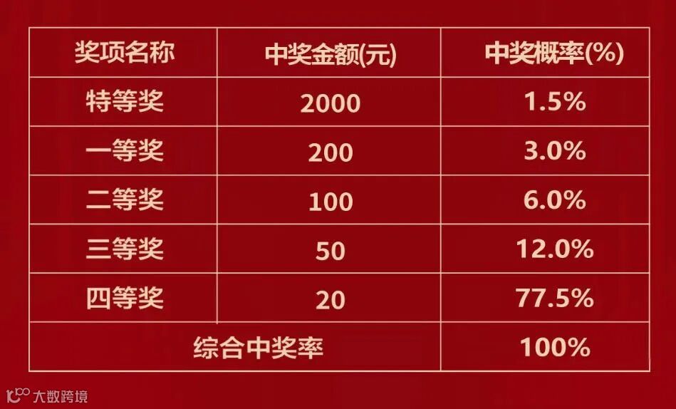 2、活动奖项及中奖概率: