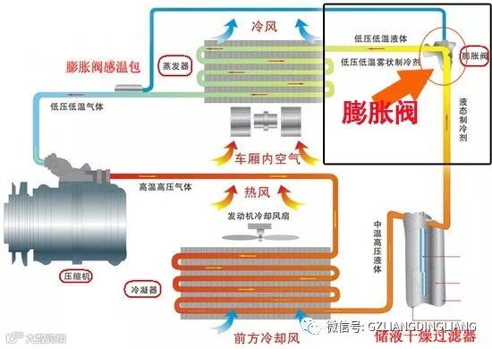 前三期的“夏日巡礼系列”对汽车空调系统的部件有了系统的介绍,这期,我们依旧跟大家聊一聊汽车空调系统中的另一部件——膨胀阀。话不多说,先上图看看膨胀阀在汽车空调系统中的位置。