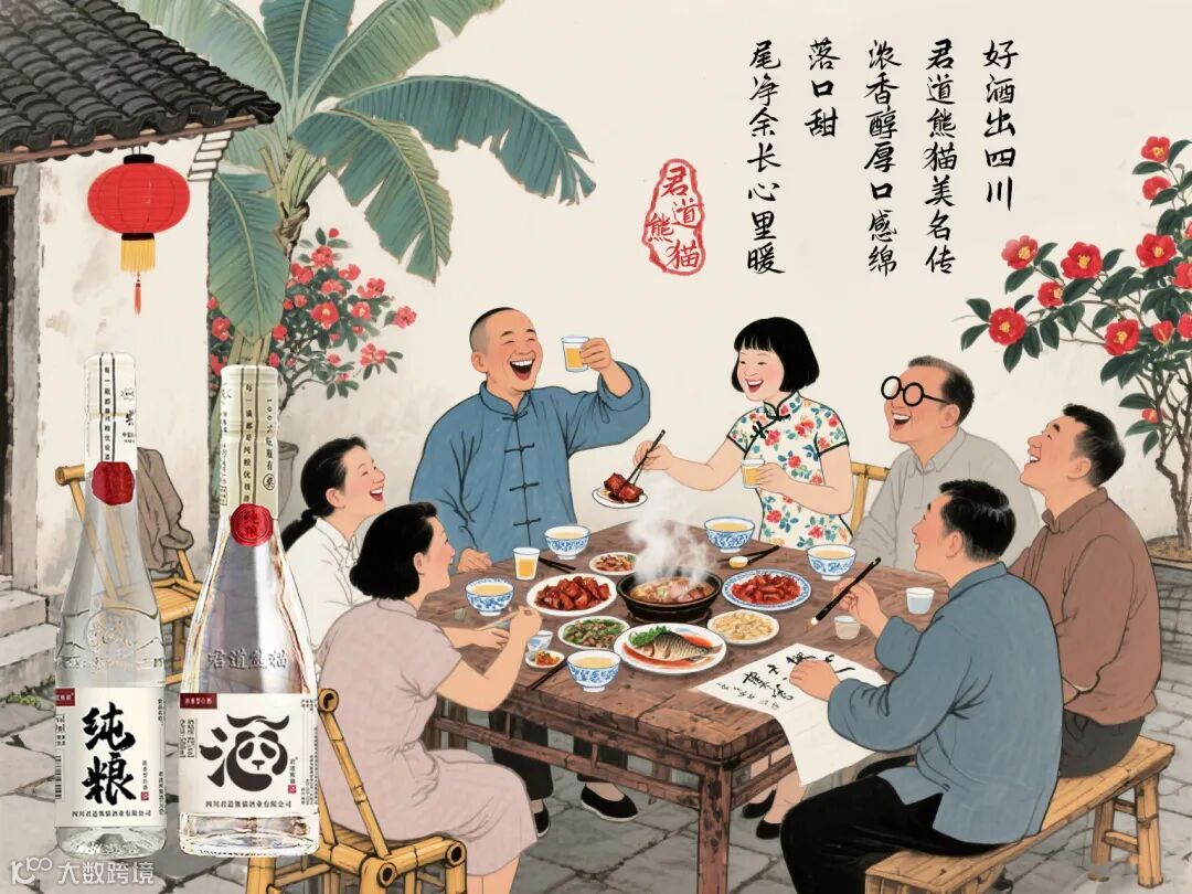 而当庭院红灯高挂,亲友围坐,佳肴满桌,君道熊猫酒又成了温情的纽带。浓香漫溢,落口甘甜,尾净余长,碰杯时的清脆,混着欢声笑语,将相聚的暖,深深酿进心里。
